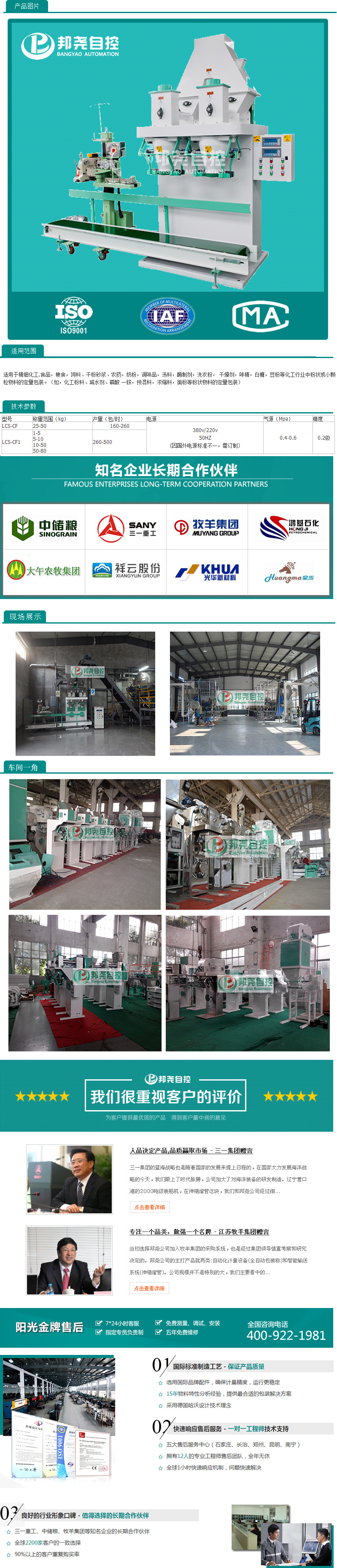 適用于精細化工,食品,糧食,飼料、干粉砂漿、農藥,奶粉,調味品,湯料,酶制劑,洗衣粉, 干燥劑,味精,白糖,豆粉等化工行業中粉狀或小顆粒物料的定量包裝。(如,化工粉料、減水劑、磷酸 一銨,預混料,濃縮料,面粉等粉狀物料的定量包裝)