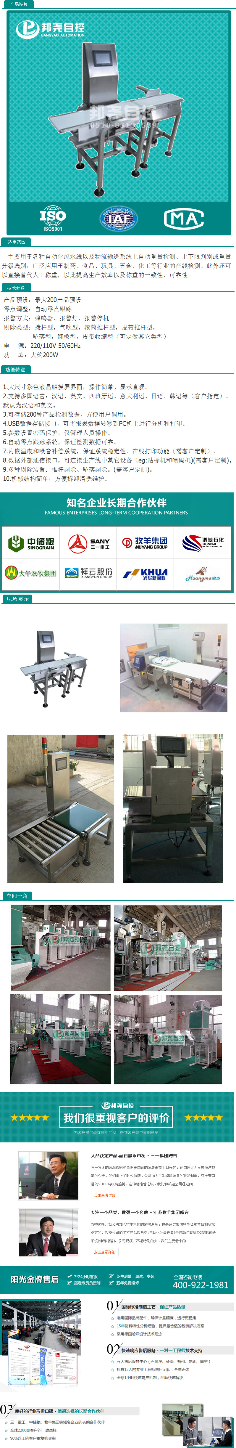重量選別機(jī)又叫重量分選機(jī),在線檢重秤,是一種應(yīng)用于各種自動(dòng)化流水線以及物流輸送系統(tǒng)上的自動(dòng)重量檢測(cè)、上下限判別或根據(jù)重量檢測(cè)產(chǎn)品是否合格的高科技自動(dòng)化分選設(shè)備。廣泛應(yīng)用于制藥、食品、玩具、五金、化工、汽車配件等行業(yè)的在線檢測(cè)。此外,還可直接替代人工稱重,以達(dá)到提高生產(chǎn)效率,提高準(zhǔn)確度和山少人工,降低成本的目的。